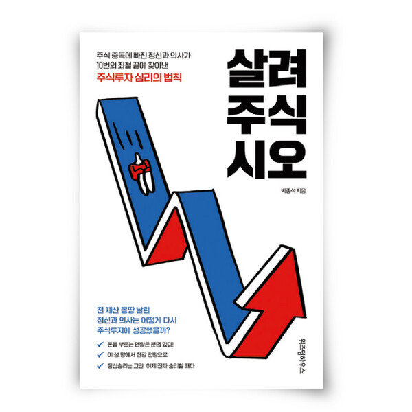 살려주식시오박종석 지음/ 위즈덤하우스/ 304쪽/ 1만6000원 “난 정신과 의사니까 자기 관리를 더 잘할 수 있다” “욕망을 절제하고 인내하는 법을 아니까 주식에 과도하게 빠지지 않을 것이다”….명문 의대를 졸업한 현직 정신건강의…