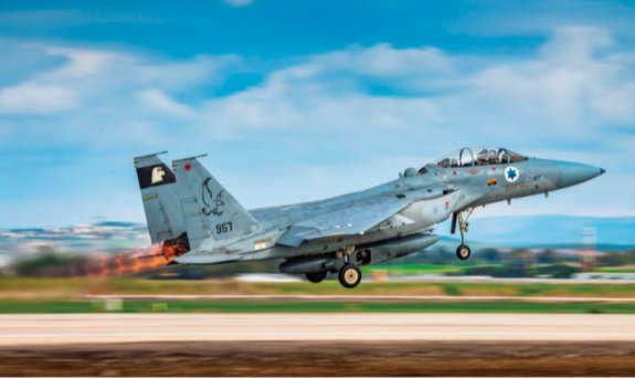 이스라엘 공군 F-15D 전투기가 장거리 광학정찰포드 ‘LOROP’를 장착한 채 출격하고 있다. 이스라엘 공군 제공