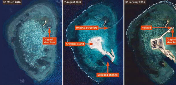 중국이 필리핀, 베트남 등과 영유권 분쟁을 벌이고 있는 남중국해를 자국의 바다로 만들고자 암초와 산호초를 인공섬으로 건설하고 있다. 공사가 진행 중인 곳만 7곳으로 모두 2016년까지 완공할 계획. 이렇게 되면 남중국해에 대한 중국…