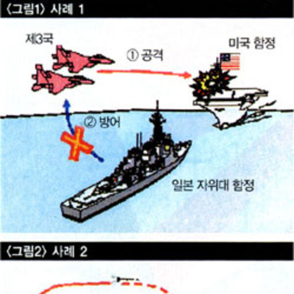 “미국과 한국이 함께 바다에서 훈련하다 미국 배가 공격받으면 한국은 당연히 돕지 않겠나. 하지만 일본은 바로 옆에 있어도 도울 수 없다. 동맹국을 도울 수 없는 이런 바보 같은 상황을 지속시켜서는 안 된다.”(노가미 요시지(野上義二…