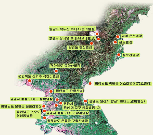평안북도 신의주 석하리별장90년대 초반 지어진 별장으로 김 위원장이 중국에 가기 전 잠시 쉬어가기 위해 만들어졌다고 한다. 지난해 비밀리에 중국을 방문했을 때, 그리고 2004년 용천역 폭발사고가 일어났을 때도 김 위원장은 이 별장…