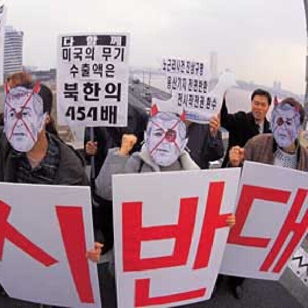 ‘전쟁 반대’ ‘미국 반대’ ‘부시 방한 반대’…. 조지 W. 부시 미국 대통령의 방한(2월19∼21일) 반대 시위의 함성이 거세다. 북한을 ‘악(惡)의 축’으로 지목한 그의 연두교서 발언은 통일기반 조성을 향한 한반도 주민의 노력…