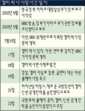 지금 영국에서는 국방부 자문역이었던 데이비드 켈리 박사(59)를 죽인 ‘살인자’를 찾는 진실게임이 벌어지고 있다. 켈리 박사는 영국 정부가 이라크 전쟁의 정당성을 얻기 위해 이라크의 대량살상무기(WMD) 보유 의혹을 과장했다고 보도…