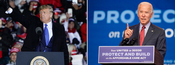 미국 대선이 코앞으로 다가왔다. 주요 여론조사 결과는 민주당 조 바이든 대선후보가 오차 범위 밖에서 앞서는 것으로 나오고 있다. 하지만 선거를 결정짓는 핵심 지역에서는 그 차가 크지 않다. 특히 도널드 트럼프 대통령의 거친 말과 행…
