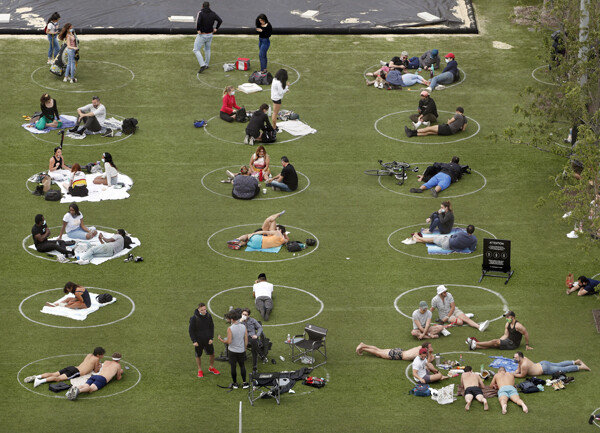 봉쇄 풀린 뉴욕, 공원에서 쉴 때도 원 안에서!?