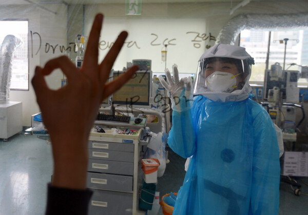 3킬로그램이 넘는 방호복을 입고 땀이 비오듯 흘러도 환자가 건강을 찾을 때까지 각국의 간호사들은 서로를 격려하며 코로나 최전선에 나서고 있다.
