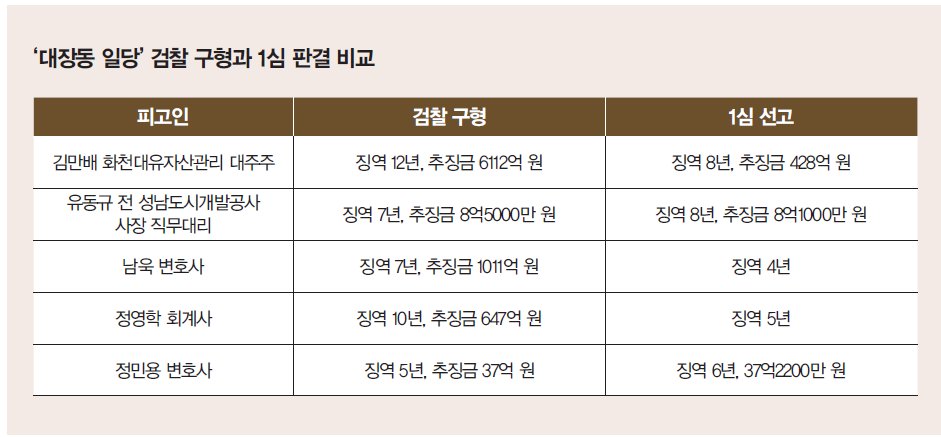 서울중앙지법 형사합의22부(부장 조형우)는 10월 31일 특정경제범죄가중처벌법상 배임 등 혐의로 재판에 넘겨진 화천대유자산관리 대주주 김만배 씨에게 징역 8년을 선고하고 428억 원 추징을 명령했다.(표 참조) 함께 재판을 받은 유동규 전 성남도시개발공사 사장 직무대리(8억1000만 원), 정민용 변호사(37억2200만 원) 등에게 부과한 금액을 더하면 추징금 총액은 473억3200만 원이다. 당초 검찰은 2021년 10월 이들을 기소하면서 “민간업자들이 성남시 공무원 등과 결탁해 재산상 이익을 취득했다”는 이유로 총 7814억 원 추징을 구형한 바 있다. 법원 선고가 구형액의 6% 수준에 그쳤는데도 검찰이 11월 7일 항소를 포기해 파문이 일었다. 전문가들은 검찰이 항소를 포기한 이상 민사소송이 진행돼도 범죄수익금 전체를 환수하기는 어려울 것이라고 입을 모은다.