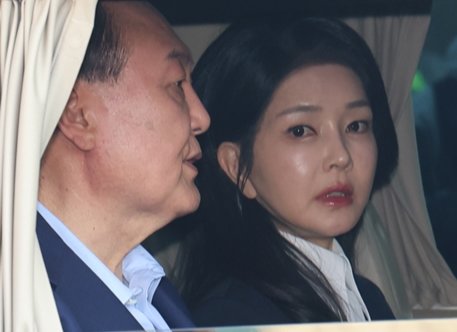 윤석열 전 대통령(왼쪽)과 김건희 여사가 4월 11일 오후 서울 용산구 대통령 관저를 떠나고 있다. 사진공동취재단