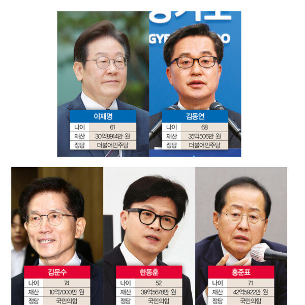대선 주자 재산 꼴찌는? 답은 김문수 10억… 이재명은 30억 신고
