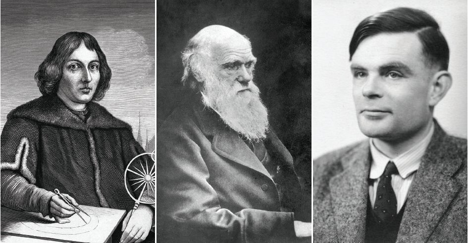 니콜라우스 코페르니쿠스, 찰스 다윈, 앨런 튜링(왼쪽부터)은 모두 다른 시대에 살았던 과학자지만 과학적 발견 및 추론으로 당시 인간의 지위와 정체성을 뒤흔들었다는 공통점이 있다. GETTYIMAGES ·동아DB