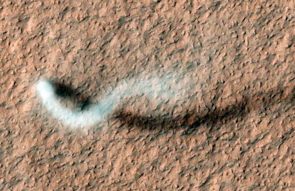 미국항공우주국(NASA)의 화성 정찰 궤도선이 포착한 먼지 소용돌이. 미국 항공우주국 제공