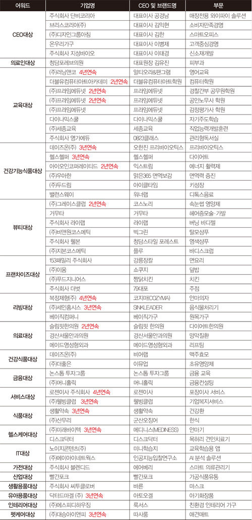 심사를 맡은 김홍유 경희대 경영대학원 교수는 “국가 발전과 소비자 만족을 위해 끊임없이 정진하는 기업을 발굴해 뜻깊다”며 “시상한 기업들이 넥스트 노멀 시대에 앞장서 새로운 가능성을 타진하고 세계로 뻗어나가 각 분야를 선도해가길 바란다”고 말했다.