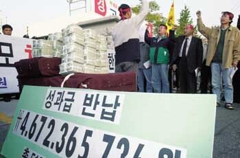 교원들의 사기 진작을 위해 도입한 성과상여금제가 거꾸로 교무실 붕괴를 일으켰다. 추석 직전 정부가 차등 지급한 성과급 때문에 지금 교무실은 시기와 반목, 고성과 삿대질이 오가는 싸움터로 변했다. 정부가 공정한 평가기준 마련이나 교원…