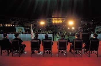 결과는 아무도 모른다. 그저 한걸음 한걸음 나아갈 뿐.대의원과 국민당원을 앞으로 하고 앉아 있는 민주당 대통령후보 경선 주자들에게는 뒷모습에서도 긴장감이 잔뜩 묻어난다. 그들은 그 자리에서 절망도 하고, 새로운 희망을 꿈꾸기도 한다…