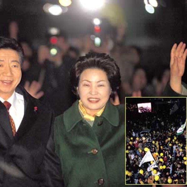 ‘변화와 개혁’을 바라는 국민의 열망이 노무현 민주당 후보의 21세기 첫 대통령 당선으로 나타났다. ‘패거리정치’와 ‘돈정치’를 거부해온 그의 당선 자체가 ‘정치혁명’으로 얘기되고 있다. 반면 1996년 ‘화려하게’ 정치 무대에 등…
