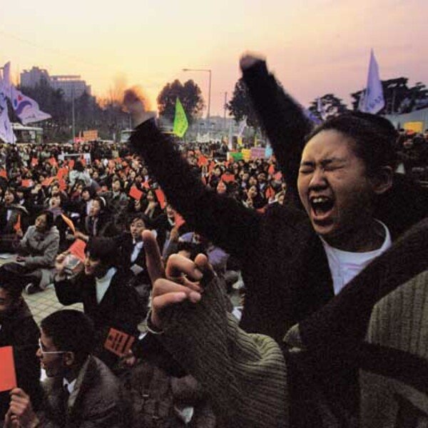 11월23일 용산 전쟁기념관 앞에서 여중생범대위 소속 회원들과 시민, 학생, 청소년 등 2000여명이 참여한 가운데 ‘오만한 살인미군 무죄판결 무효선언 및 주한미군 규탄대회’가 열렸다. 이날 집회에 참석한 여중생들은 재판 무효와 미…