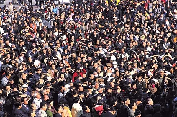좀처럼 달아오르지 않던 대선 열기가 마침내 불붙기 시작했다. 대선후보의 연설을 듣는 유권자들의 표정이 자못 진지하다.